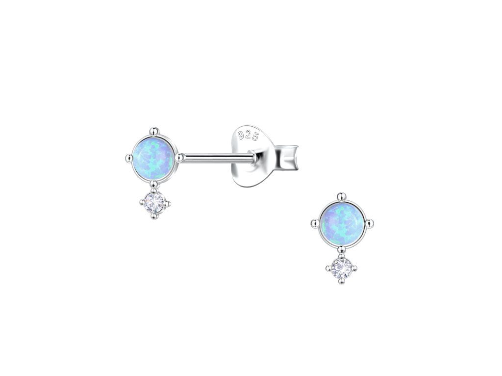 Stříbrné náušnice modrý OPÁL se Zirkonem Ag 925/1000