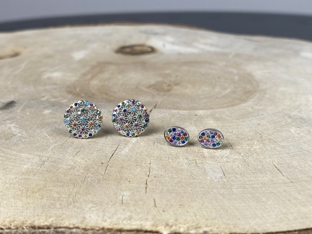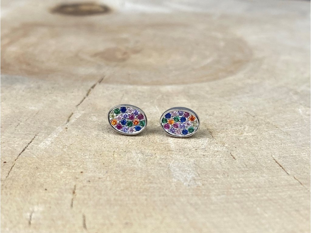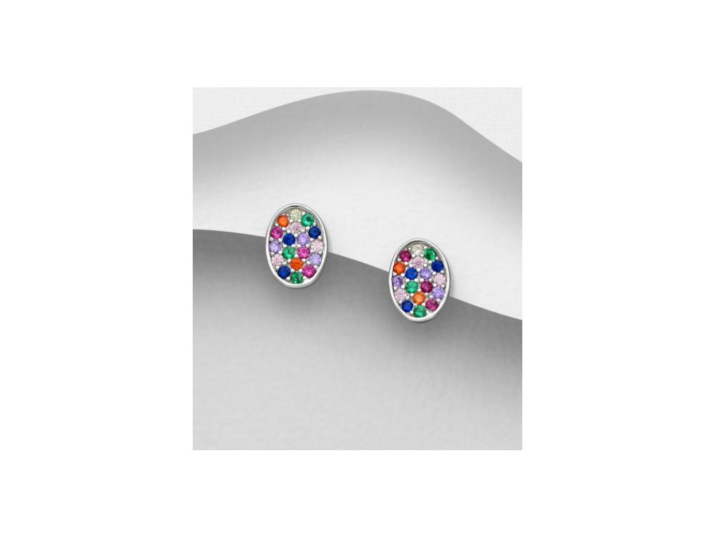 Stříbrné náušnice Rainbow Oval se Zirkony.