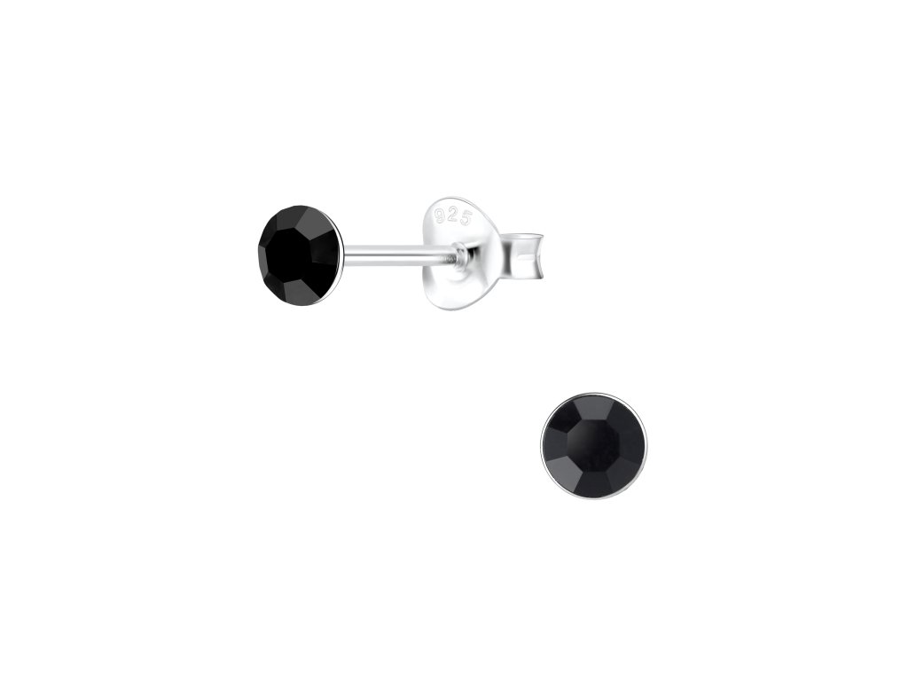 Stříbrné náušnice s Krystalem Jet 4 mm Ag 925/1000
