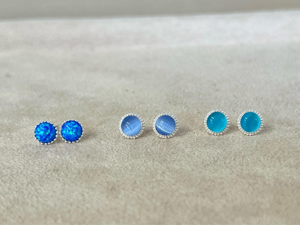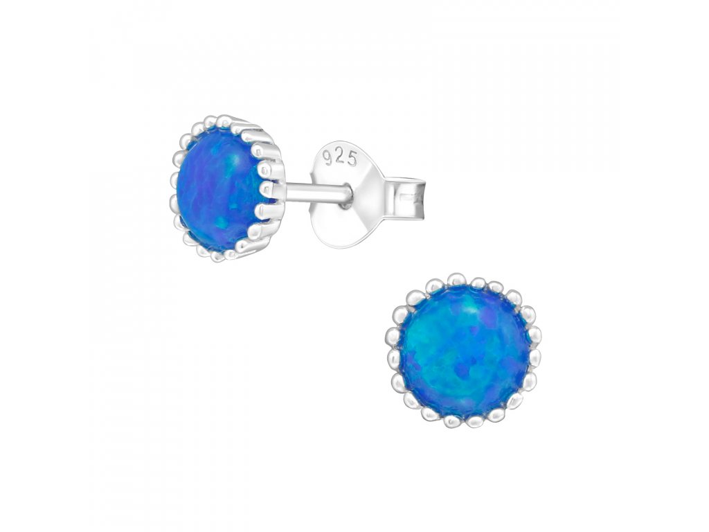 Krásné stříbrné náušničky s kamenem syntetického modrého Opálu.