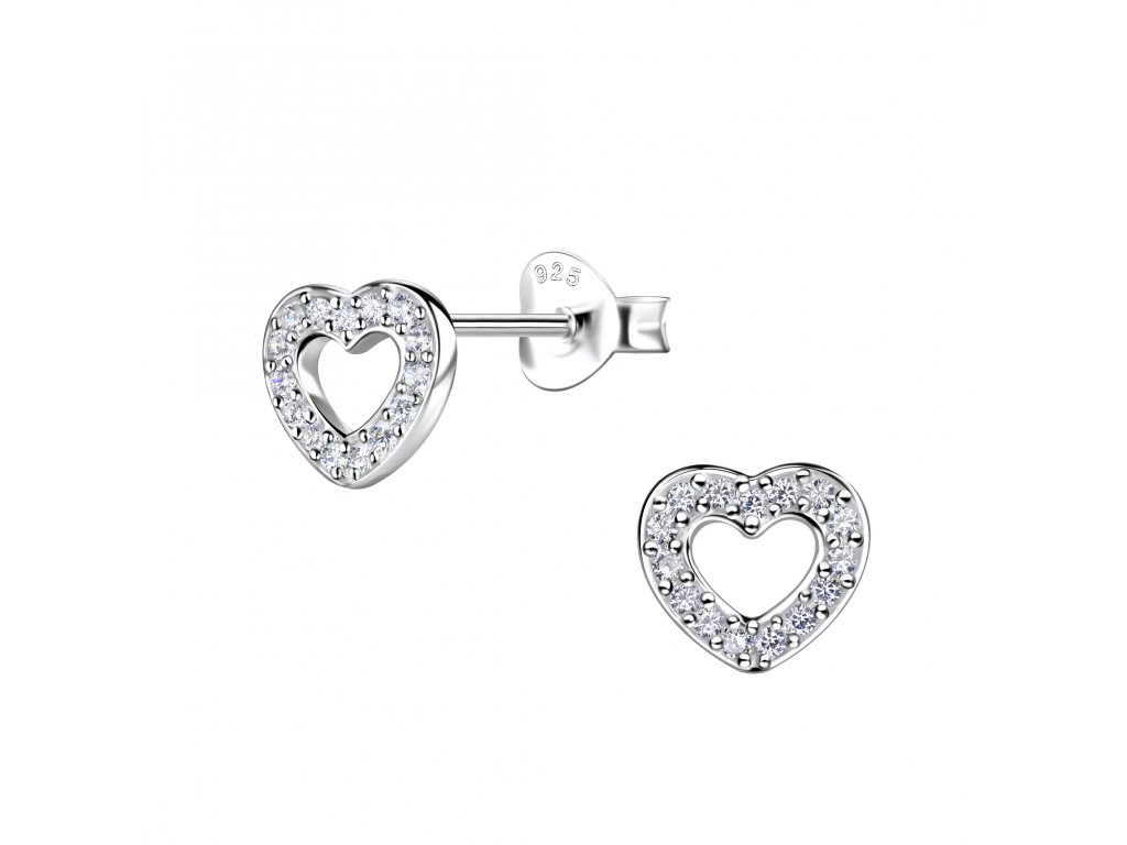 - Stříbrné náušnice Srdíčka jsou celé ozdobené krásnými třpytivými Zirkony.