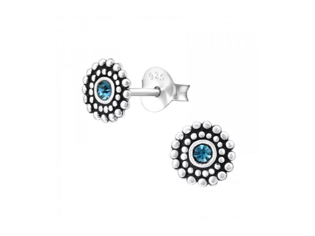 Stříbrné náušničky s oxidovaným povrchem a kamínkem Krystalu uprostřed. Starožitný vintage vzhled.