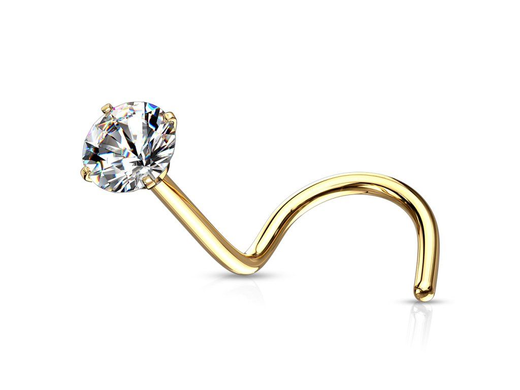 Piercing/nosovka s kubickým Zirkonem, vyrobený z chirurgické oceli 316L a prémiovým pokovením PVD. Šperk vhodný na každodenní nošení.