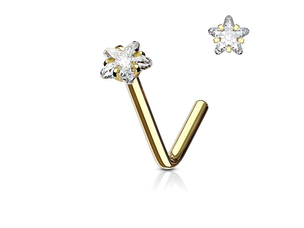 Piercing/nosovka s kubickým Zirkonem ve tvaru hvězdy, vyrobený z chirurgické oceli 316L a prémiovým pokovením PVD. Šperk vhodný na každodenní nošení.