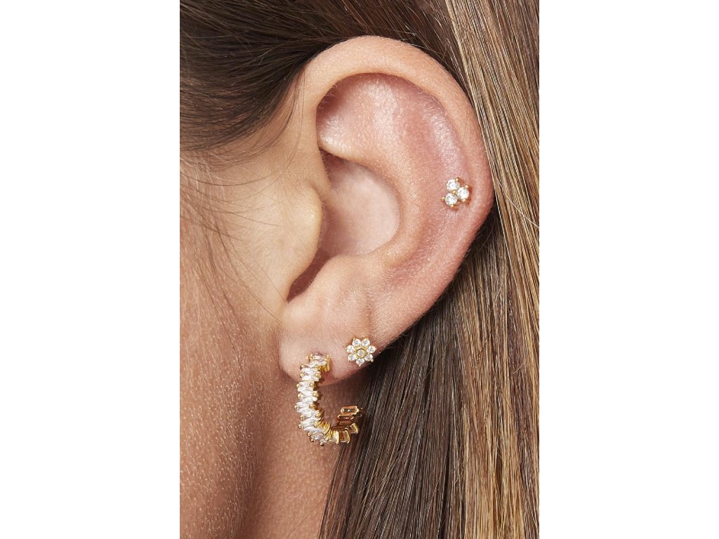 Tento půvabný piercing MEDA Gold je zdobený třemi třpytivými kamínky. Elegantní šperk, který krásně ozdobí tvé ucho při jakékoliv příležitosti, navíc jej snadno zkombinuješ s ostatními náušnicemi. Zapínání je na šroubovací kuličku.
