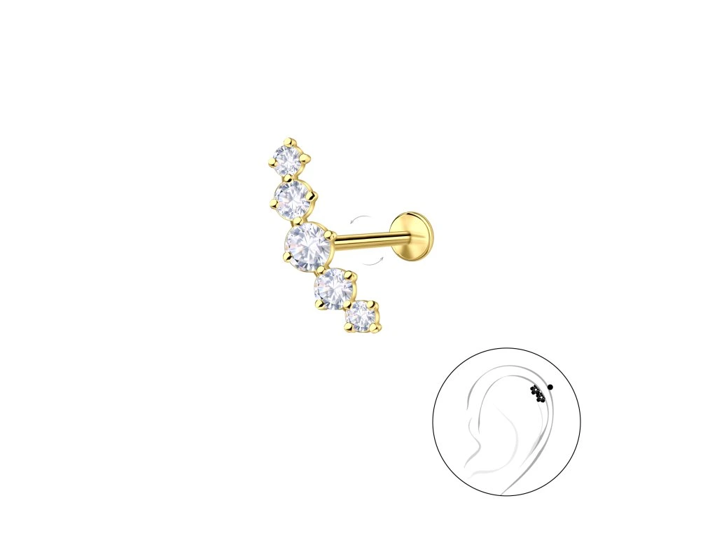 - Třpytivý, pozlacený piercing/náušnice do ucha NIA je osázený krásnými kubickými Zirkony.