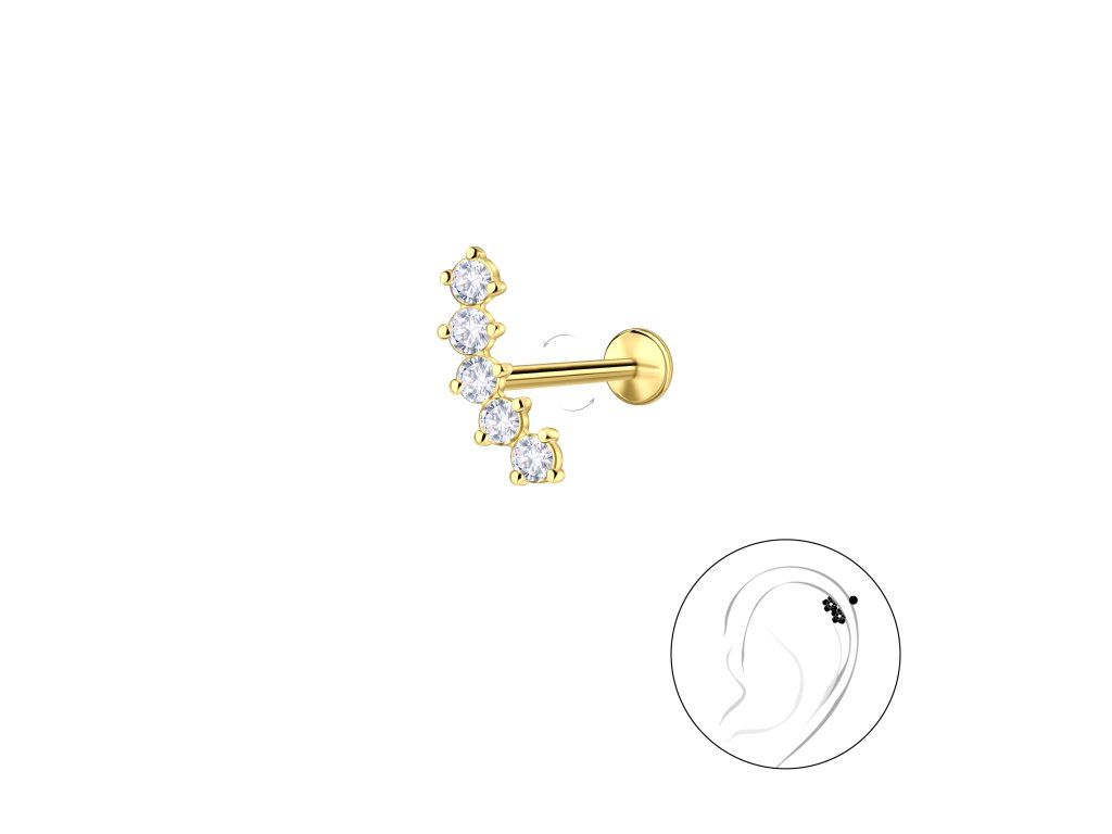 - Oslnivý, pozlacený piercing/náušnice do ucha ARI je osázený krásnými kubickými Zirkony.