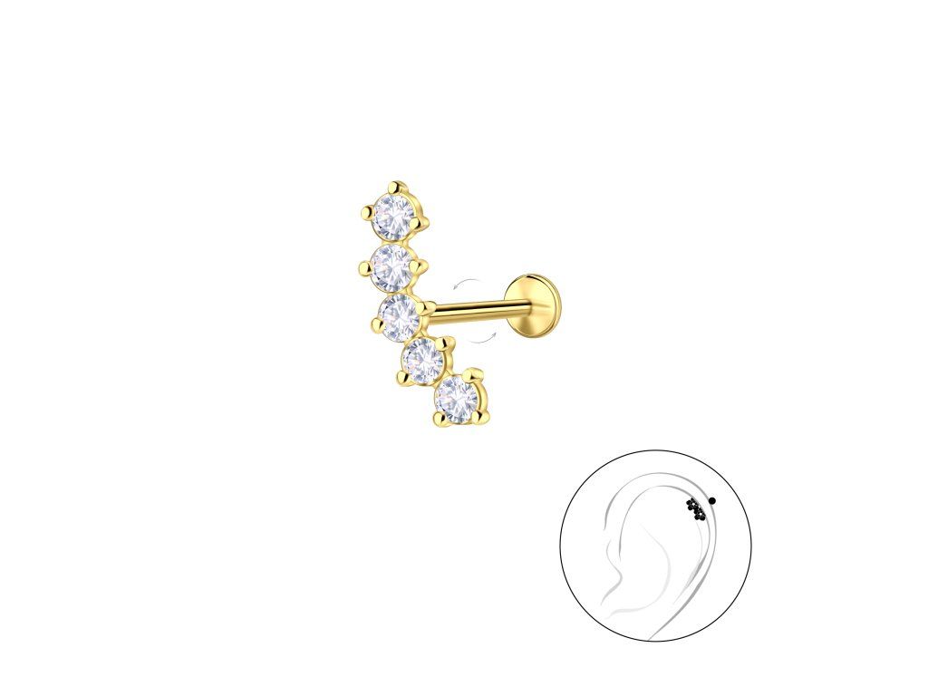 - Třpytivý, pozlacený piercing/náušnice do ucha KAI je osázený krásnými kubickými Zirkony.