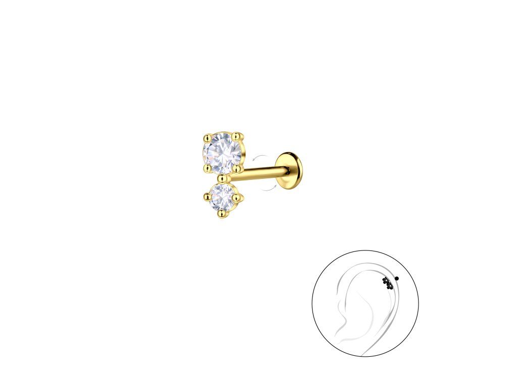 - Krásný, pozlacený piercing/náušnice do ucha LIA je osázený dvěma krásnými kubickými Zirkony.