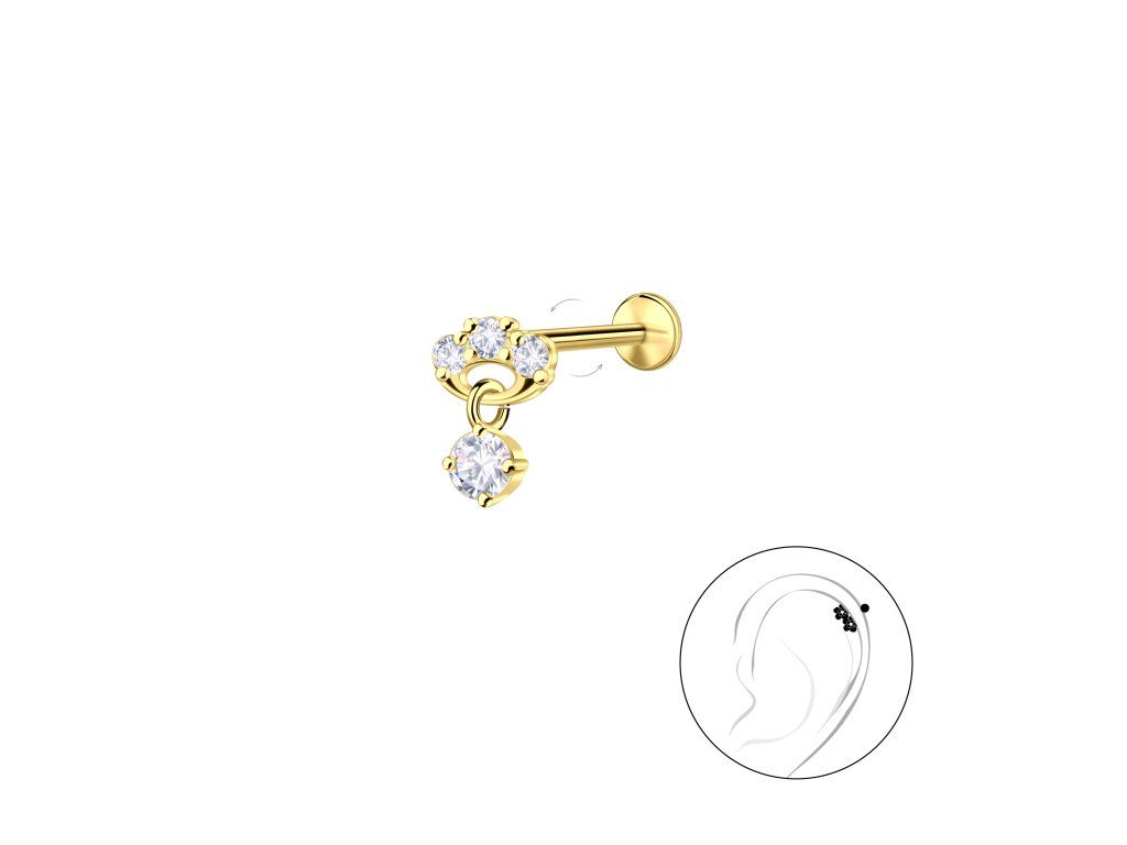 - Elegantní, pozlacený piercing/náušnice do ucha YRA je osázený dvěma krásnými kubickými Zirkony.