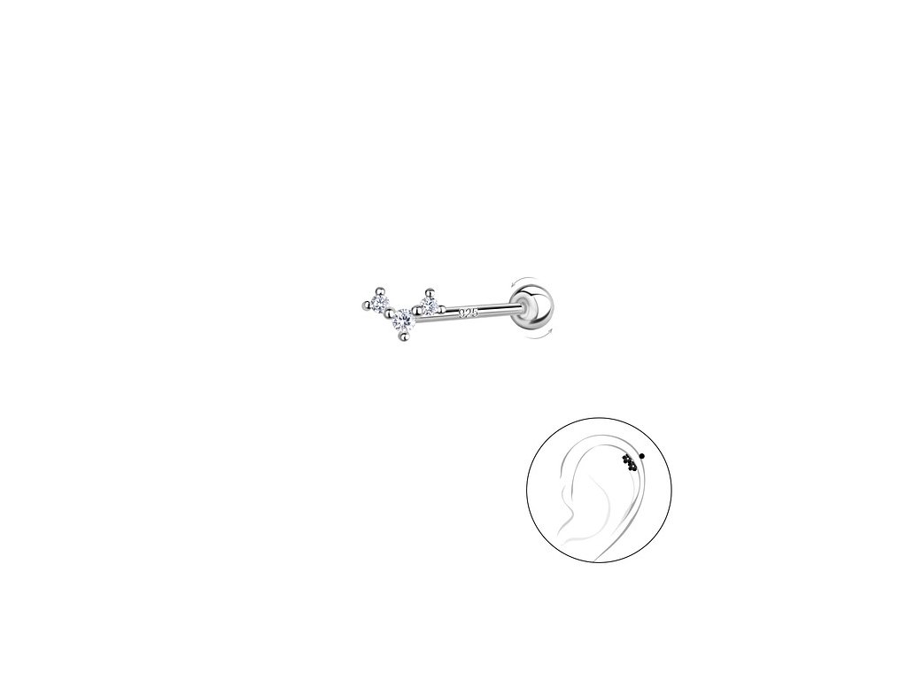 - Drobný stříbrný piercing do ucha ROCKIE je osázený třemi jemnými kubickými Zirkony.