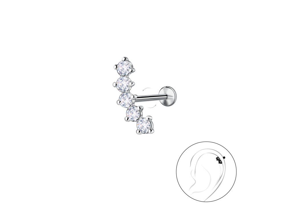 - Třpytivý, stříbrný piercing/náušnice do ucha KAI je osázený krásnými kubickými Zirkony.