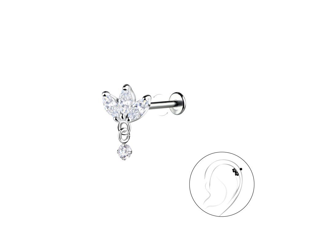 - Třpytivý, stříbrný piercing/náušnice do ucha LARA je osázený krásnými kubickými Zirkony.