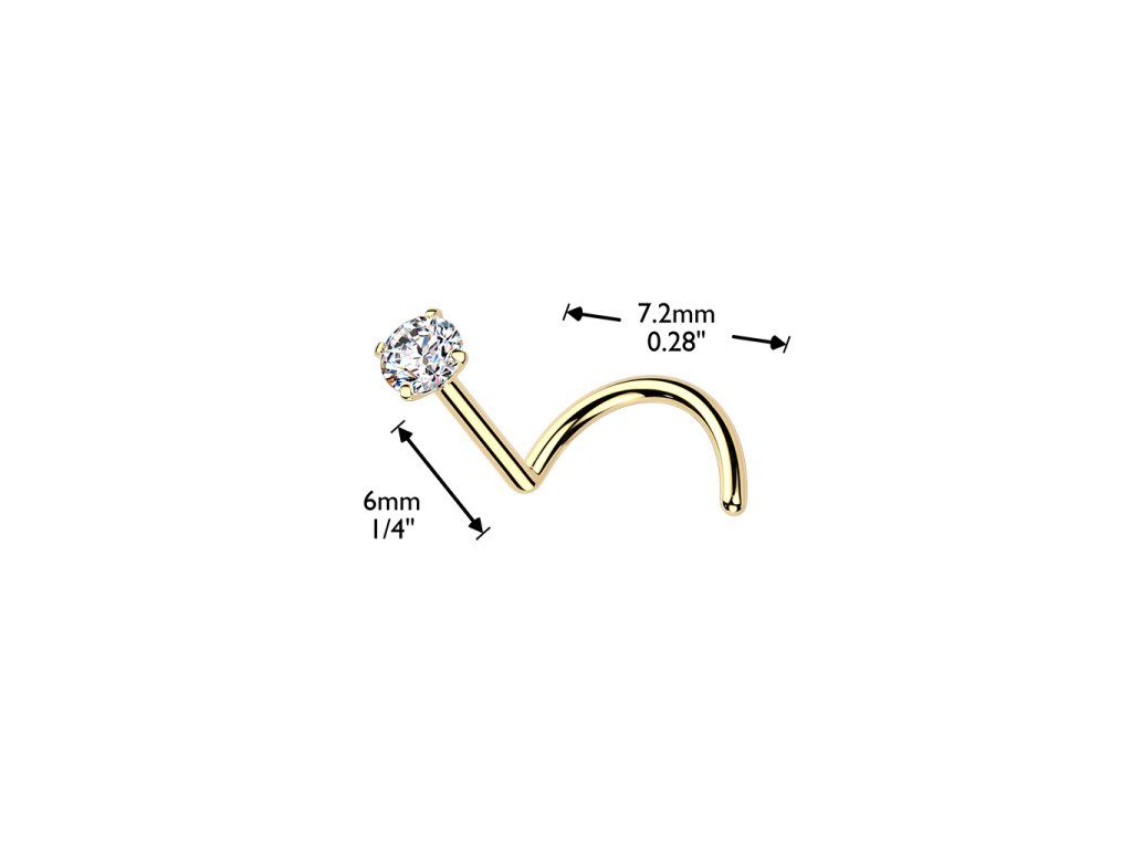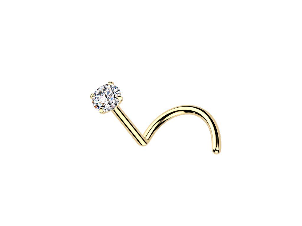 Piercing/nosovka z titanu implantační třídy ASTM F136 s povrchovou úpravou leštěním/prémiovým PVD pokovením 24K zlatem. Lehký, odolný a hypoalergenní šperk pro každodenní nošení.