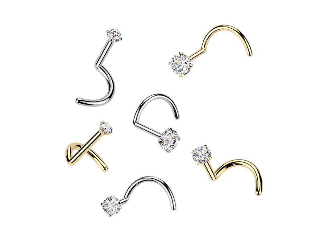 Titanový piercing do nosu s Moissanitem - z titanu implantační třídy ASTM F136