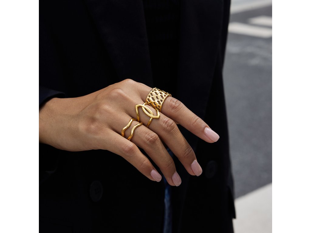 Elegantní prsten INES, který upoutá svým moderním designem! Díky svému širšímu provedení krásně na ruce vynikne. Prsten se hodí jak k dennímu nošení, tak jako doplněk k večernímu outfitu. Velikost tohoto šperku je univerzální a padne přibližně velikosti 6-7/EU 52-55.