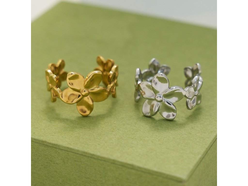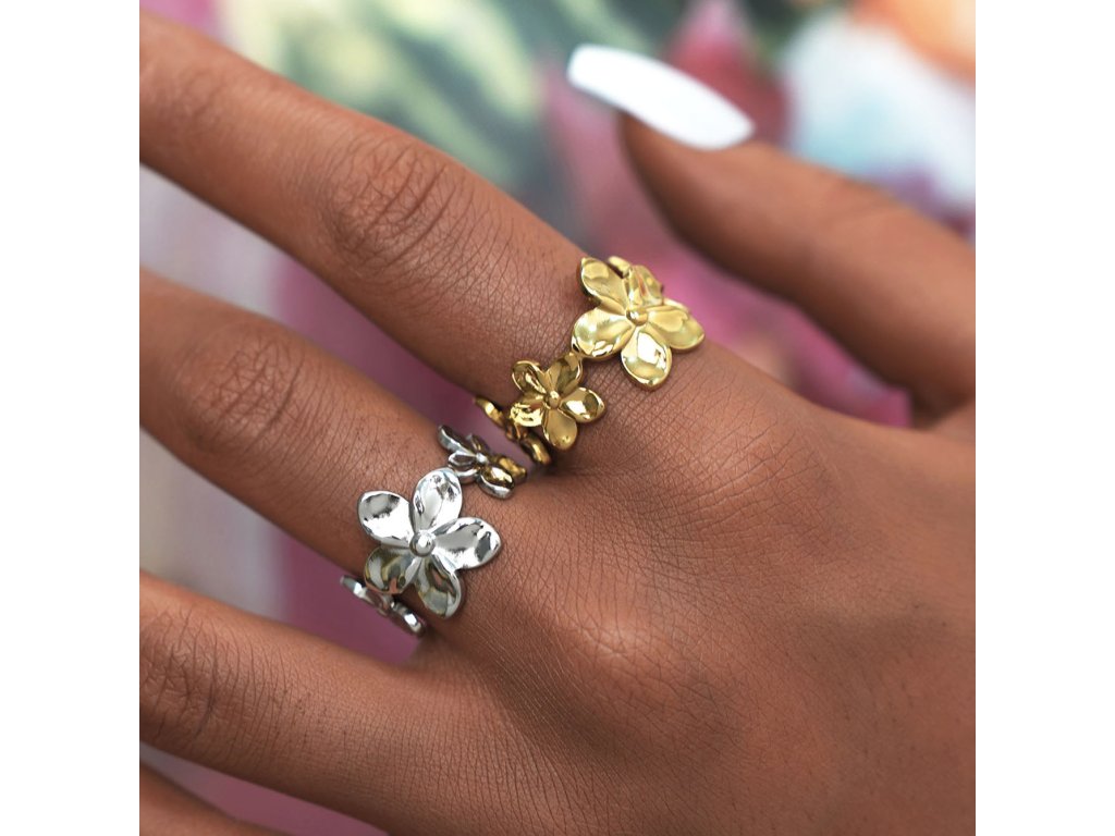 - Výrazný prsten s motivem květin na ruce krásně vynikne.