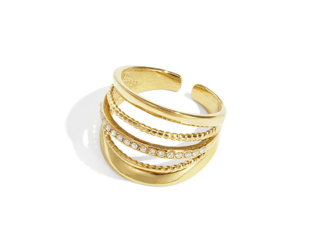 Výrazný prsten TIARA zdobený čirými Zirkony tě uchvátí svým stylovým provedením. Pokud jsi milovnice mohutných a netradičních šperků, tak tento si rozhodně zamiluješ. Prsten má univerzální velikost, takže jej můžeš libovolně střídat a kombinovat s dalšími šperky. Krásně doplní tvůj outfit při jakékoliv společenské události či večerní akci. Udělej si radost tímto kouzelným šperkem.