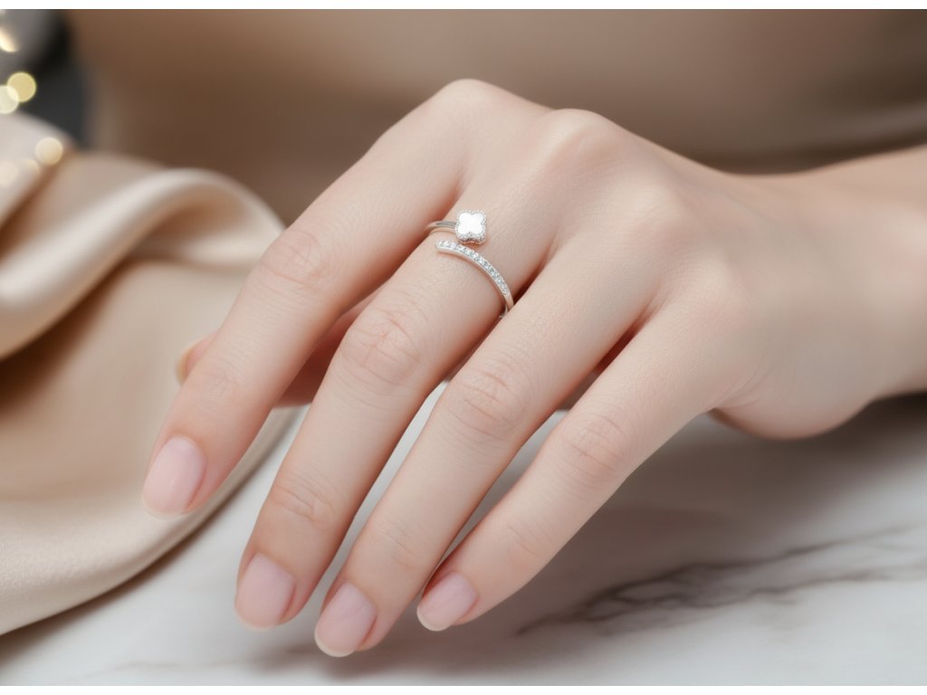 - Udělej si radost tímto elegantním otevřeným prstenem Shell CLOVER
