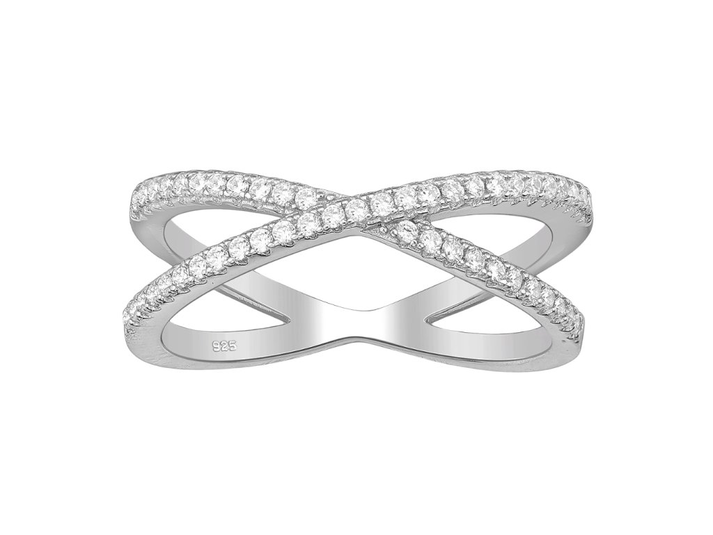 - Stříbrný překřížený prsten SUSAN zdobený kamínky kubického Zirkonu.