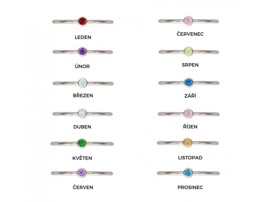 Jemný, drobný stříbrný prstýnek s kamínkem v barvě měsíce narození. Udělej radost sobě nebo milované osobě a daruj tento personalizovaný dárek. Velikost kubického Zirkonu je 2 mm.