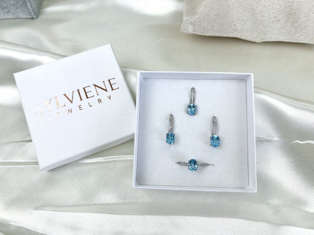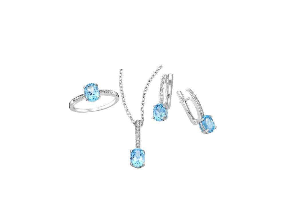 Stříbrná sada šperků AMANDA modrý Topaz Ag 925/1000 Dárková krabička zdarma