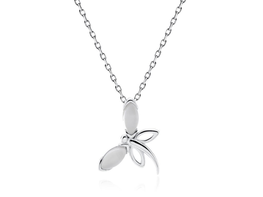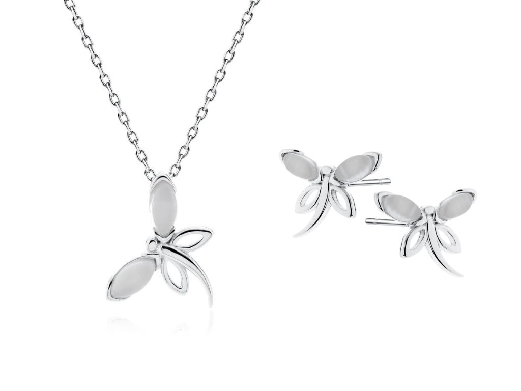 Dárková sada šperků Vážka, která udělá radost. Stříbrné náušnice a náhrdelník jsou zdobené syntetickým ulexitem v mléčném odstínu. Vážka je symbolem znovuzrození, nové etapy života, předzvěstí harmonie a štěstí. Skvělý tip na dárek - pro přítelkyni, maminku nebo kamarádku.