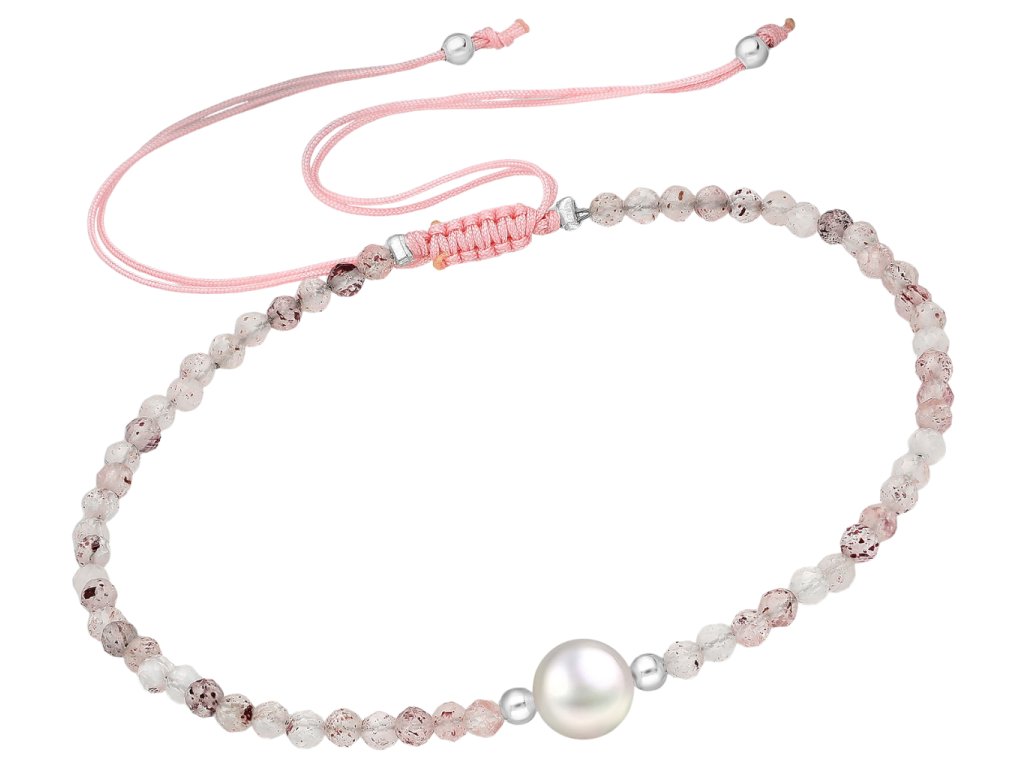 Šňůrkový náramek Jahodový křemen s perličkou Ag 925/1000