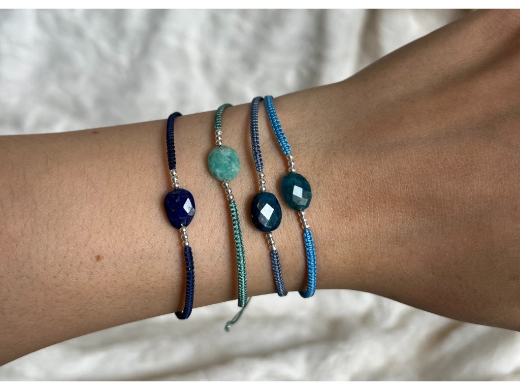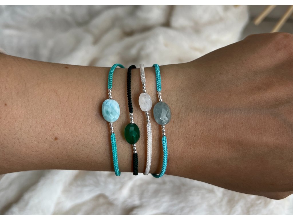 Šňůrkový náramek se stříbrnými korálky a krásným kamenem Amazonitu. Pokud máš ráda přírodní polodrahokamy, tento náramek s výrazným kamenem je pro tebe jako dělaný. Velikost je nastavitelná na 15-23 cm a je tak vhodný na každé zápěstí.