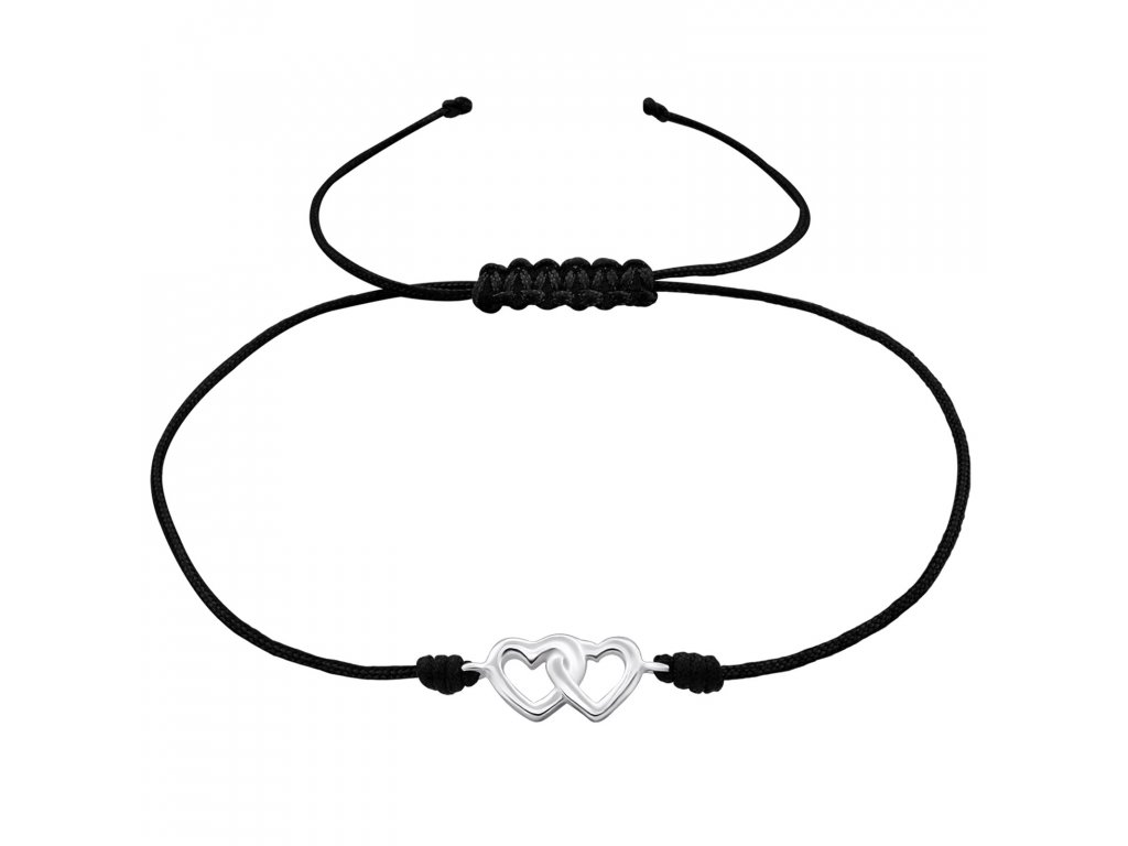 Šňůrkový náramek se spojenými srdíčky Ag 925/1000