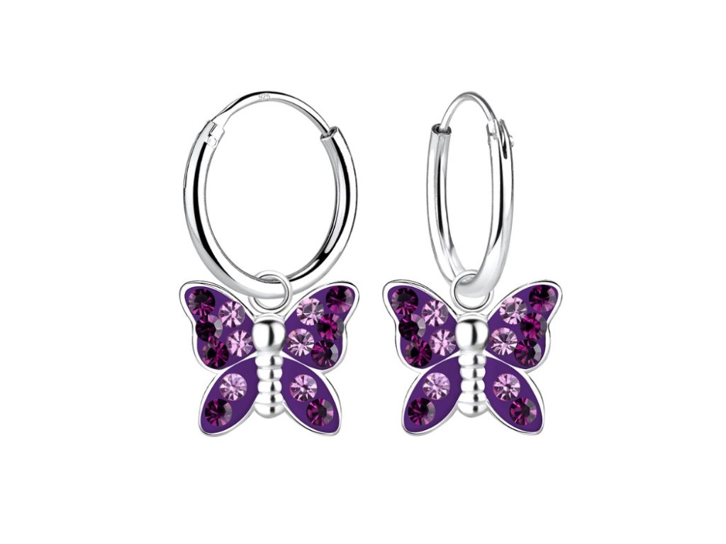 Dětské stříbrné kroužky Motýlek jsou osázeny krásnými fialovými Krystaly. Tyto náušničky vykouzlí úsměv na tváři každé malé slečně, která se chce parádit. Udělej jí těmito roztomilými náušnicemi radost!