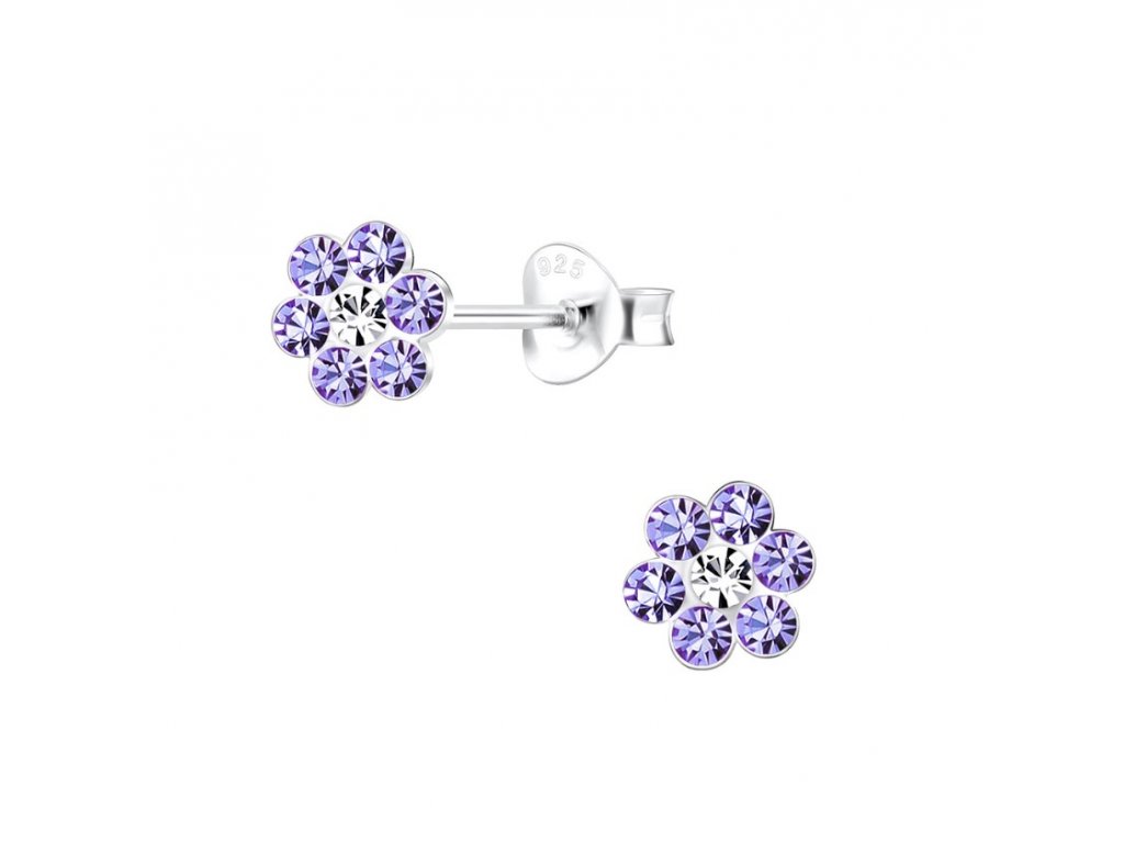 Dětské stříbrné náušnice fialová Květinka s Krystaly Ag 925/1000