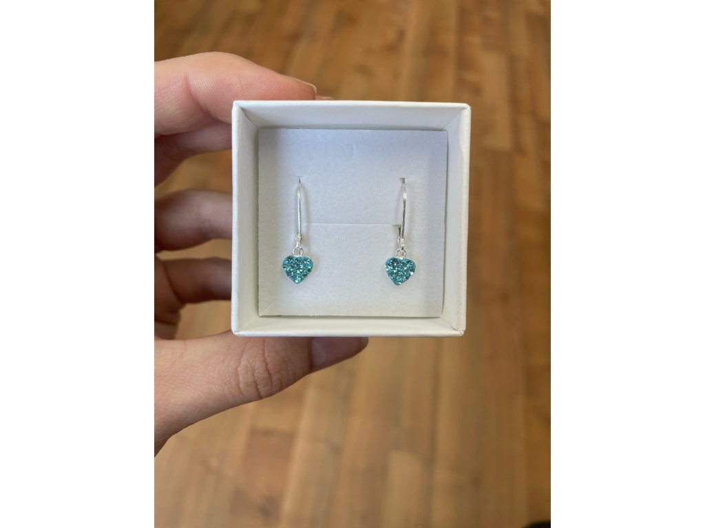 Kouzelné náušnice srdíčko s modrými krystaly se zapínáním na klapku.