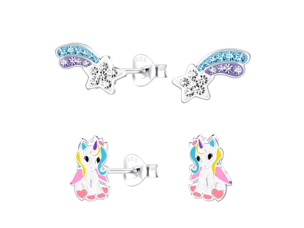 - Sada dvou párů dětských stříbrných náušnic Kometa & Jednorožec.