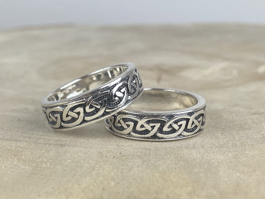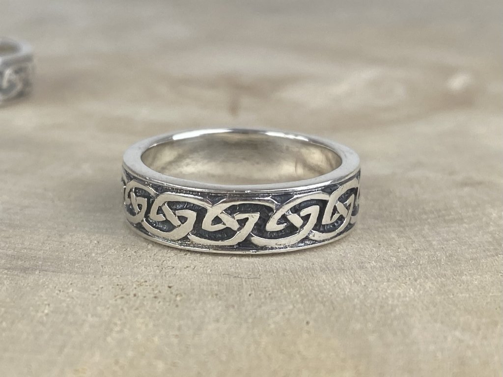 Výrazný stříbrný prsten Celtic pro muže o šířce 6 mm.