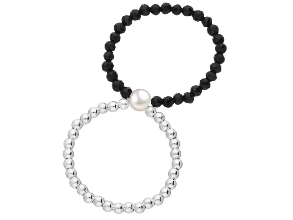 - Tento dvojitý korálkový prsten je kombinací kamínků černého Achátu a stříbrných kuliček, které spojuje syntetická perlička.