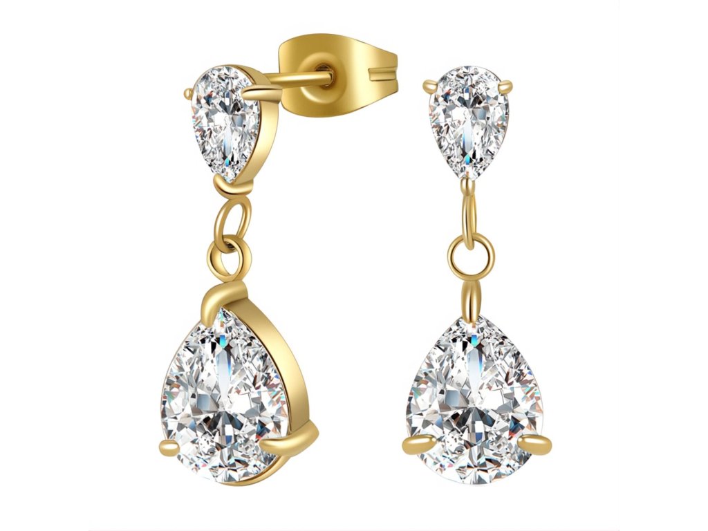 - Elegantní pozlacené náušnice VIVIENE se Zirkony, jsou zdobené čirými kameny kubického Zirkonu.