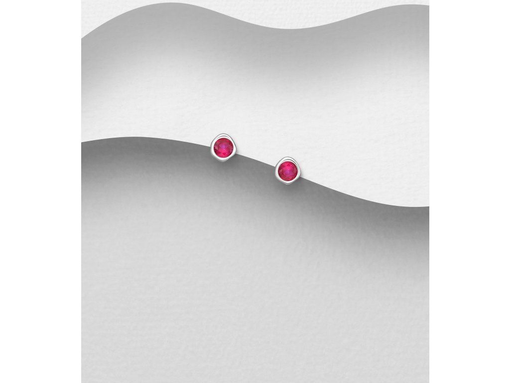 Stříbrné náušnice Birthstone Červenec - Rubín Ag 925/1000