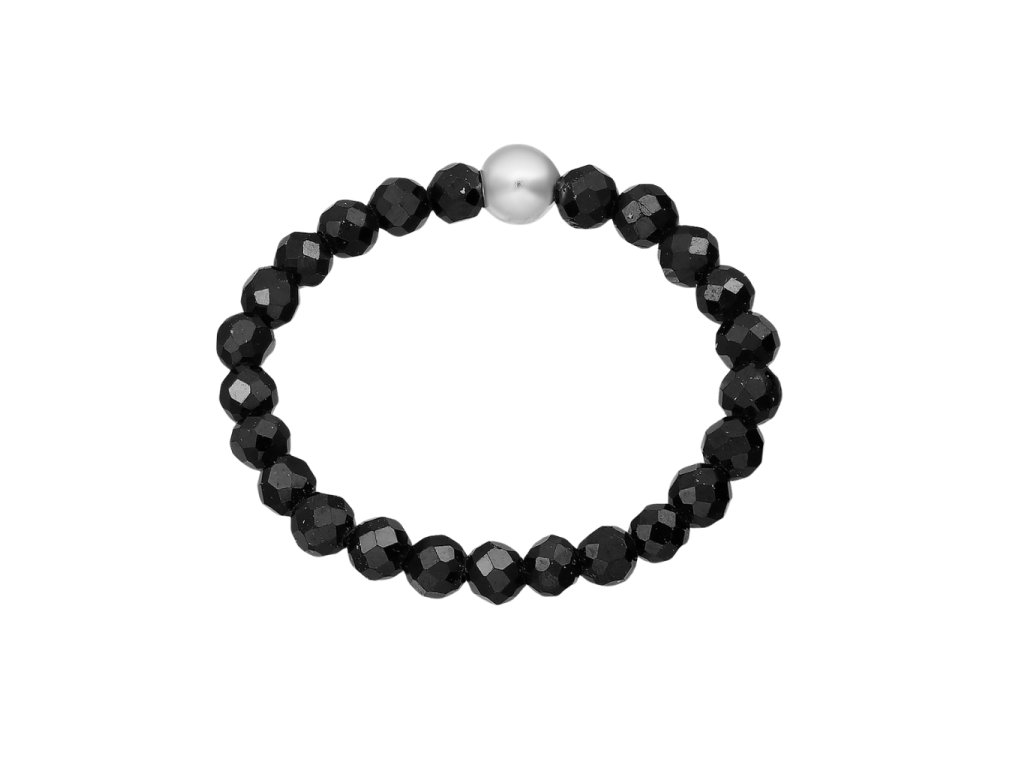 - Stříbrný korálkový prsten zdobený kamínky Spinelu v černých odstínech.
