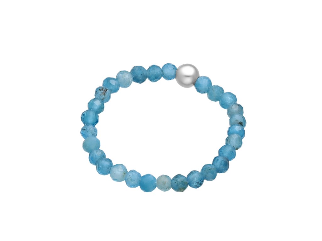 - Stříbrný korálkový prsten zdobený kamínky Apatitu v odstínech nebe.