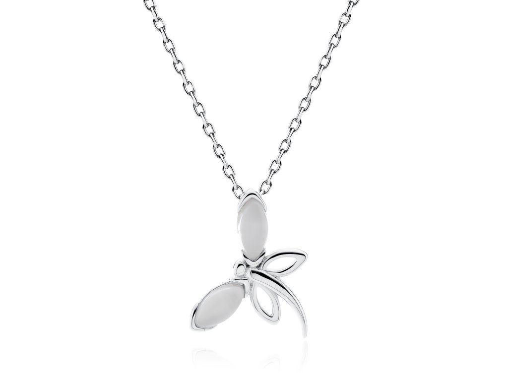Stříbrný náhrdelník Vážka zdobený syntetickým ulexitem v mléčném odstínu. Vážka je symbolem znovuzrození, nové etapy života, předzvěstí harmonie a štěstí. Tento náhrdelník je tak skvělým tipem na dárek! Neváhej a potěš sebe či svou blízkou osobu tímto krásným šperkem. Můžeš doplnit náušnicemi Vážka.