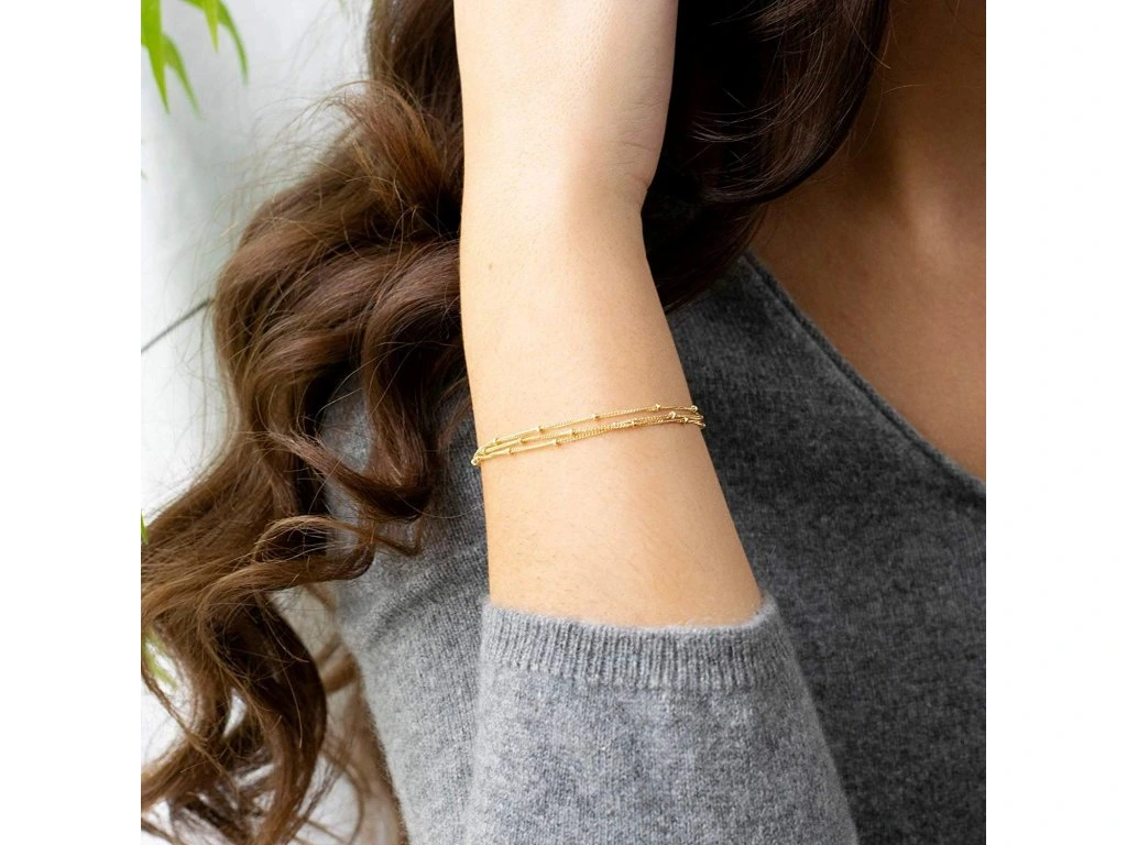 - Tento trojitý náramek zdobený kuličkami krásně ozdobí tvé zápěstí při jakékoliv příležitosti.