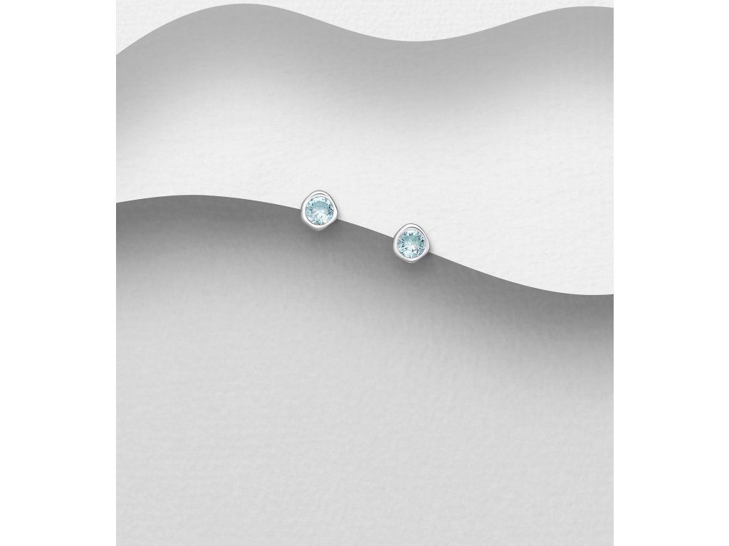 Stříbrné náušnice Birthstone Prosinec - Modrý topaz Ag 925/1000